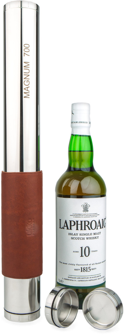 Ukko Magnum 700 XO Brun flaska med snapsglas som kork (2 cl). Tillverkad i rostfritt stål. 700 ml. Fodral till flaska i garvat läder. Ukko produkter är handgjorda och tillverkade i Finland.