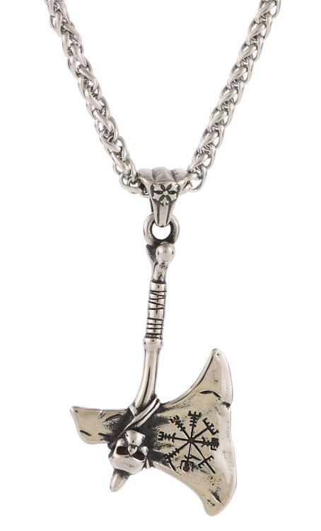Varia Design Axe Vegvisir halsband i rostfritt stål med en yxa. Kedjas längd är 60 cm, tjocklek 4 mm. Vikt: 45 g. Varia Design vikingasmycken skickas hem i tillverkarens originalförpackning.