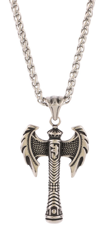 Varia Design Battle Axe halsband i rostfritt stål med en yxa. Kedjas längd är 60 cm, tjocklek 4 mm. Vikt: 45 g. Varia Design vikingasmycken skickas hem i tillverkarens originalförpackning.