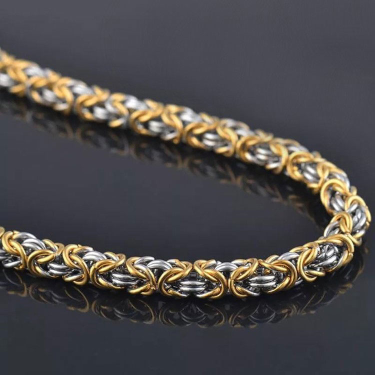 Varia Design Golden Kungslänk volymetriskt halsband i tvåfärgat rostfritt stål. Längden 60 cm, tjocklek 7 mm, vikt 90 g. Varia Design vikingasmycken skickas hem i tillverkarens originalförpackning.
