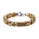 Varia Design Golden Wolf armband i tvåfärgat rostfritt stål. Armbandet är 21 cm i längd, 8 mm i tjocklek och väger 68 g. Varia Design vikingasmycken skickas hem i tillverkarens originalförpackning.