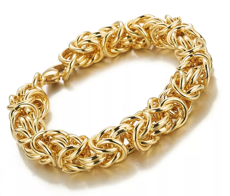 Handgjort Varia Design Pure Golden Kungslänk armband i guldfärgad rostfritt stål. Armbandet är 21 cm i längd. Varia Design vikingasmycken skickas hem i tillverkarens originalförpackning.
