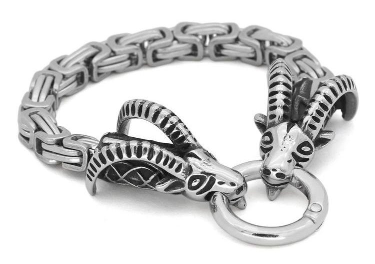 Varia Design Tanngrisner armband i rostfritt stål med Tors två bockar. Armbandet är 21 cm i längd. Varia Design vikingasmycken skickas hem i tillverkarens originalförpackning.