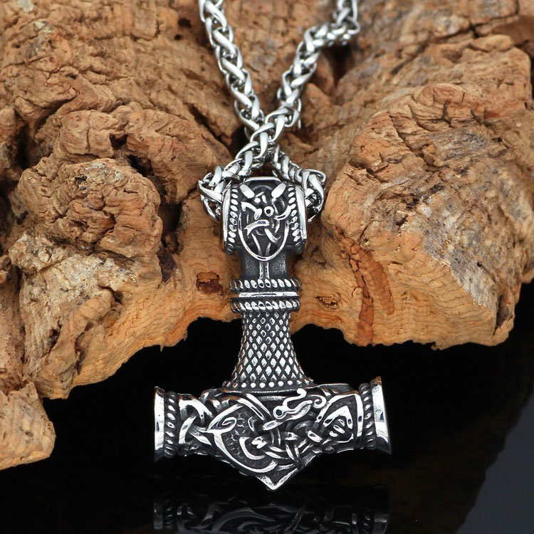 Varia Design Thors halsband i rostfritt stål med Tors hammare, Mjölner. Berlockens storlek är 40 x 30 mm. Vikt: 35 g. Varia Design vikingasmycken skickas hem i tillverkarens originalförpackning.