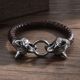 Varia Design Thunder armband brun i rostfritt stål med Odin vargar. Armbandet är 21 cm i längd. Varia Design vikingasmycken skickas hem i tillverkarens originalförpackning.