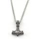 Varia Design Tor halsband silver 4 mm med Tors hammare, Mjölner. Kedjas längd är 60 cm, tjocklek 4 mm, och berlockens storlek är 43 x 30 mm. Vikt: 50g. Varia Design vikingasmycken skickas hem i tillverkarens originalförpackning.