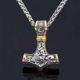 Varia Design Tor halsband silver-guld 4 mm med Tors hammare, Mjölner. Kedjas längd är 60 cm, tjocklek 4 mm, och berlockens storlek är 43 x 30 mm. Vikt: 50g. Varia Design vikingasmycken skickas hem i tillverkarens originalförpackning.