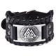 Varia Design Valknut armband silver i svart läder med symbolen Valknut. Armbandet är justerbar mellan 19-23,5 cm. Varia Design vikingasmycken skickas hem i tillverkarens originalförpackning.