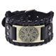 Varia Design Vehmic armband guld i svart läder med symbolen Vehmic. Armbandet är justerbar mellan 19-23,5 cm. Varia Design vikingasmycken skickas hem i tillverkarens originalförpackning.