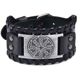 Varia Design Vehmic armband silver i svart läder med symbolen Vehmic. Armbandet är justerbar mellan 19-23,5 cm. Varia Design vikingasmycken skickas hem i tillverkarens originalförpackning.