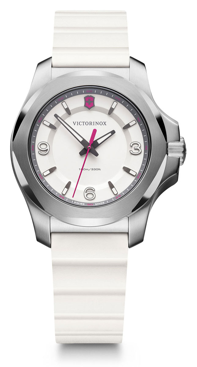 Victorinox I.N.O.X. V 241921 är en sportig, swiss-made klocka för damer. Denna tidlös klockan passar mycket bra till vardagen och har ett tunn boett i 316L kirurgisk stål, en vit urtavla och ett vitt silikonarmband. Den åttakantig bezel har en vintage-inspirerad, iögonfallande design som skapar maximal uppmärksamhet år efter år. Schweiziska Victorinox klockor har 5 års garanti. Victorinox klockor skickas hem i tillverkarens originalförpackning.