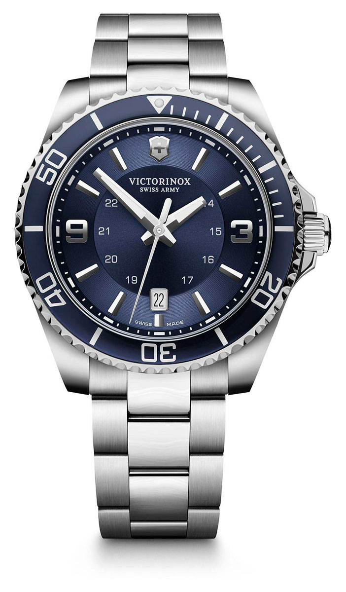 Victorinox Maverick Large 242007 är en swiss-made dykarklocka tillverkad i 316 l kirurgisk stål. Denna stilig dykare har en tålig boett på 43 mm, blå urtavla, roterande bezel, datum och är vattentät ned till 100 m. Boetten är matchad med stållänken. På insidan tickar ett kvartsverk. Schweiziska Victorinox klockor har 5 års garanti. Victorinox klockor skickas hem i tillverkarens originalförpackning.