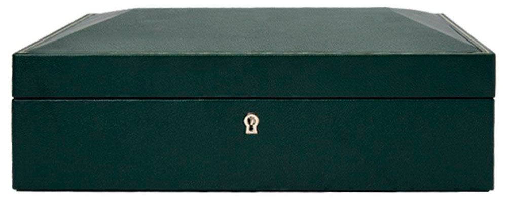 WOLF British Racing 793241 klocklåda i grönt har på mycket kort tid blivit en verklig modern klassiker. Förvara dina klockor med stil i denna låda för 15 klockor, tillverkad av veganskt läder. Lådan har även en USB-port som gör det möjligt att ladda din smartklocka. Klocklådan skyddas av ett klassiskt lås- och nyckelsystem. Garanti: 2 år.