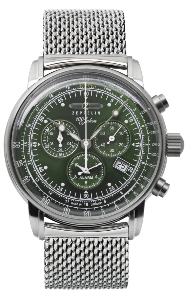 Zeppelin 100 years Zeppelin kollektionen firar luftskeppets 100-åriga historia. Nya modeller kombinerar Zeppelin klockorna med nya, moderna egenskaper. Zeppelin 100 years Zeppelin Chronograph 8680M-4 är en stilren herrklocka som passar till det mesta. Boettens bredd är 42mm och mineralglaset skyddar din urtavla mot repor och smuts. Denna klockan har ett schweizisk Ronda 5130D urverk. Viktiga funktioner: takometer, kalender, alarm och självlysande breguet-visare. Zeppelin klockorna har garanti upp till två år och de skickas hem i tillverkarens originalförpackning.
