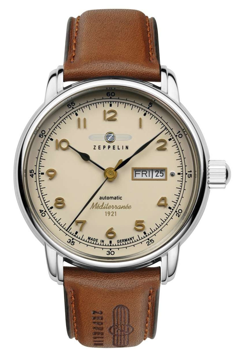 Zeppelin Méditerranée Automatic 9664-5 kostymklocka är den perfekta accessoaren för tidlös stil. Det tyska företaget Point-tec är känt för sina klassiska klockor, och deras senaste Mediterranée-kollektion utstrålar en beach vibe från 1930-talet. Klockan har en elegant rund boett, en champagnefärgad urtavla som pryds av bladformade visare och guldfärgade index samt en datum. Den harmoniska storleken på 40 mm gör att klockan passar perfekt under till exempel en skjortarm, och färgskalan är perfekt för en avslappnad outfit. Klockan är prydd med ett kamelbrunt läderarmband. Den öppna baksidan avslöjar det automatiska urverket Citizen-Miyota 8205. Zeppelin-klockorna tillverkas i Tyskland och levereras med 2 års garanti.