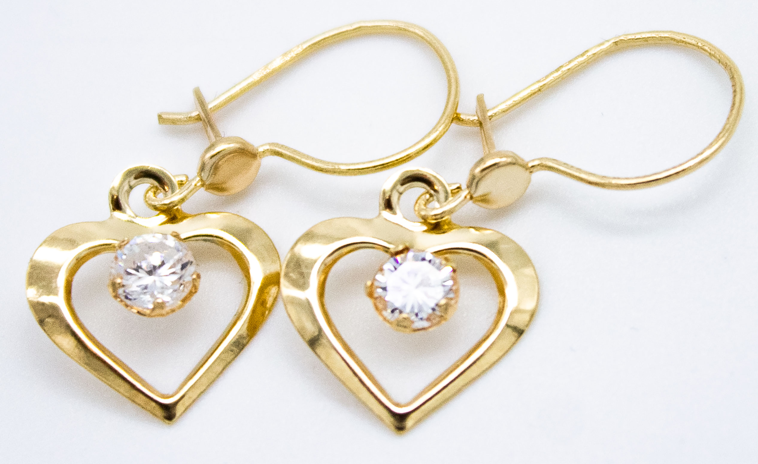 Hjärtörhängen PK2-21 med kubiska zirkonia stenar - ett par stilrena örhängen i 14k guld som passar vid varje tillfälle. Längden på örhängena är 11 mm. Smycken levereras i tillverkarens originalförpackning.